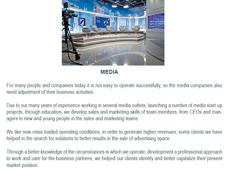 Our goal is to help our clients to acomplish their business plans trough sucessfull marketing and market communications